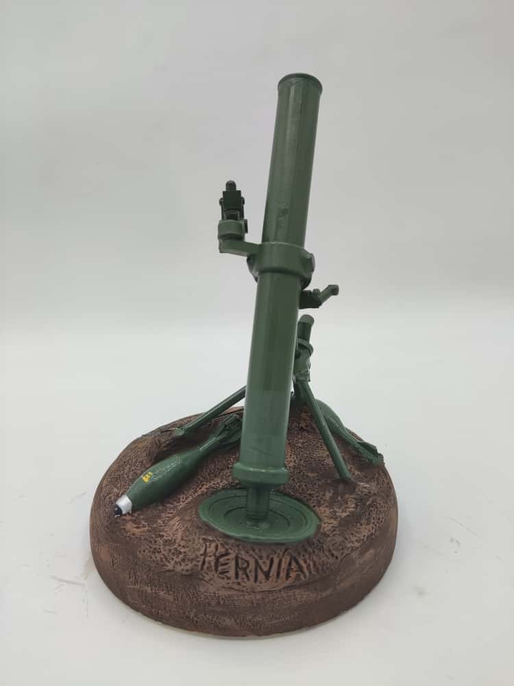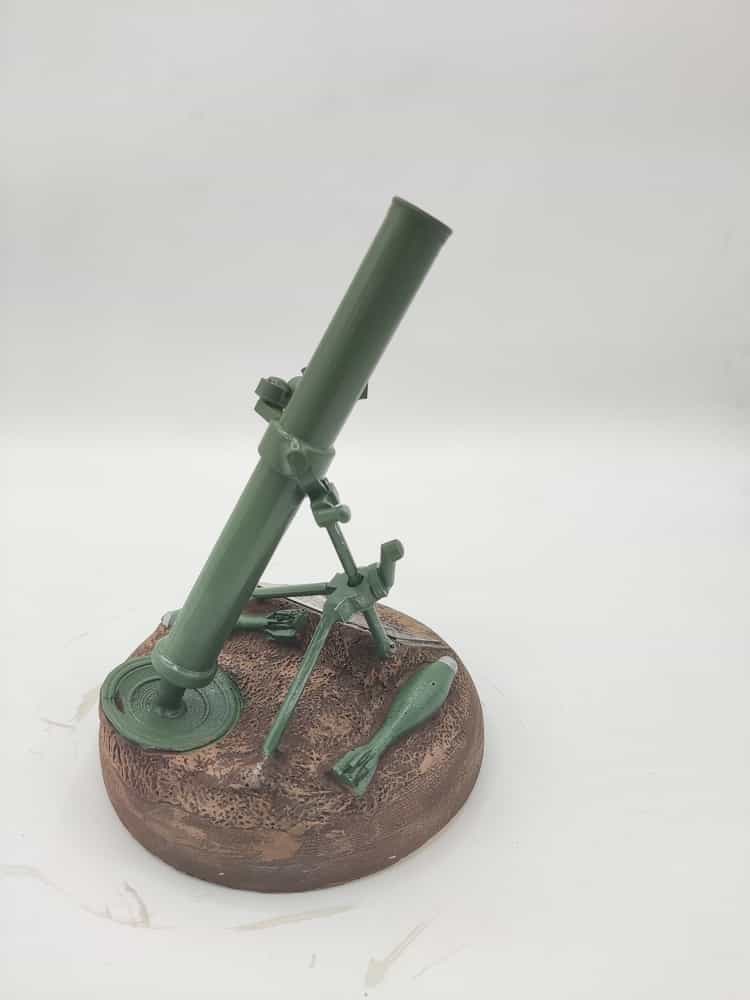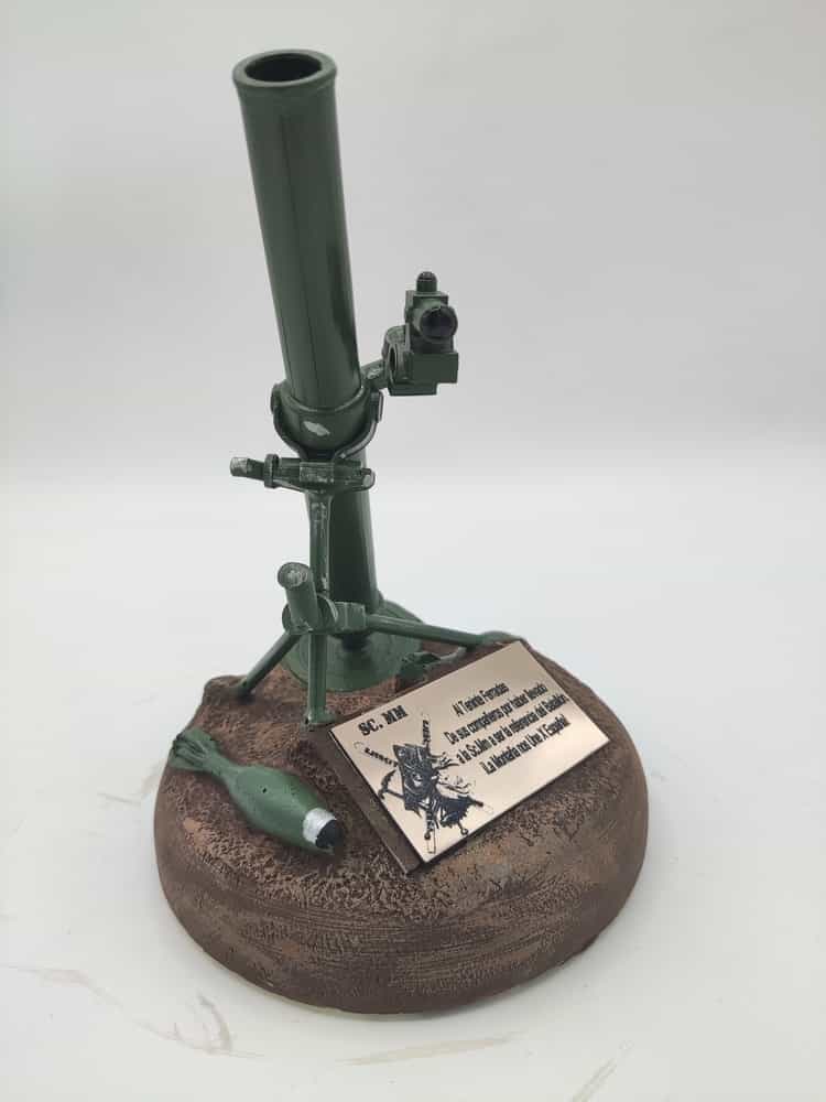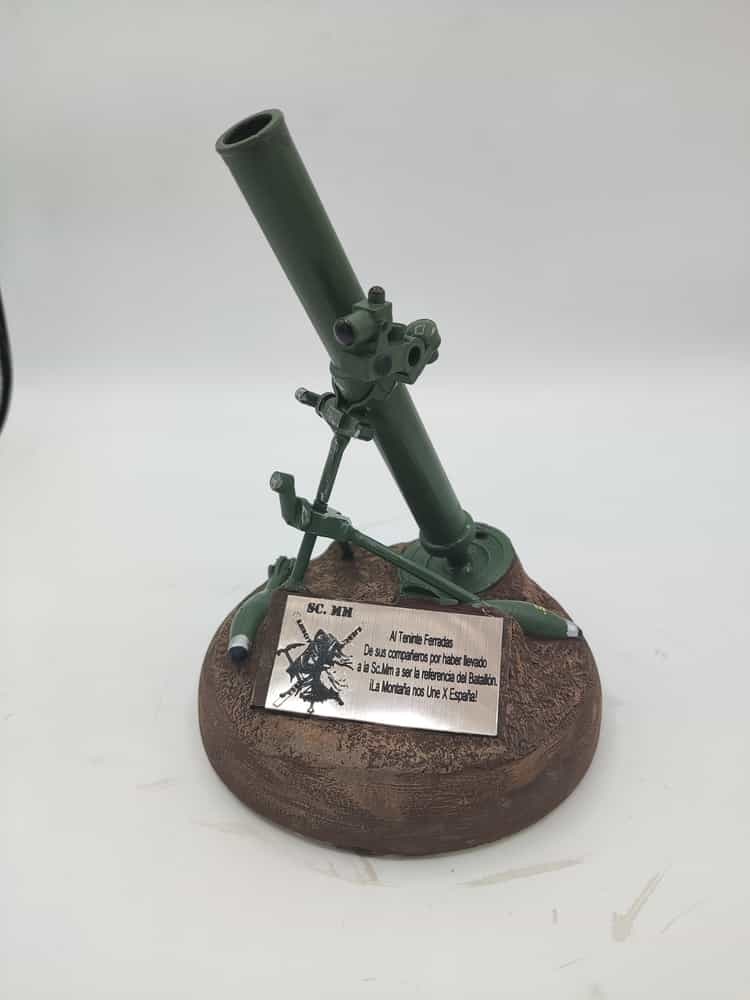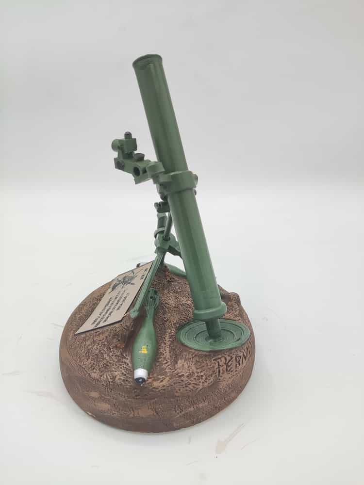 Maqueta del Mortero utilizado en la actualidad por el Ejército de Tierra Español, bonita maqueta realizada en resina  y pintada a mano, su altura es de unos 17cm .